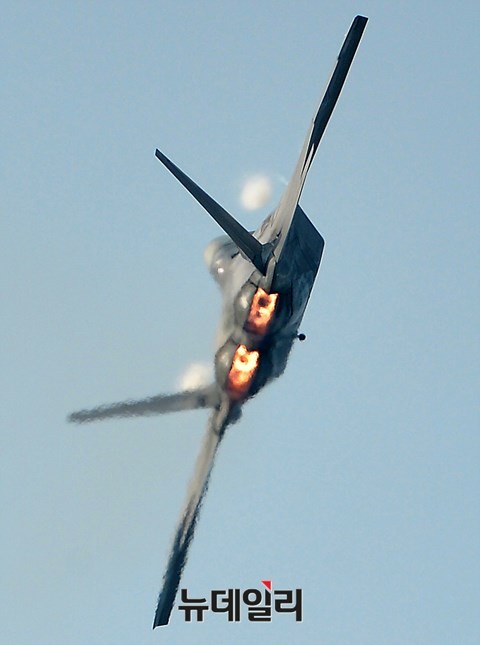 이날 개막식 기념비행에는 우리공군 블랙이글의 곡예비행이 예정돼 있었지만 짙은 미세먼지 농도로 비행이 취소됐다. 미 공군의 F-22 랩터 스텔스 전투기의 시험비행은 약 1시간 지연돼 진행됐다.