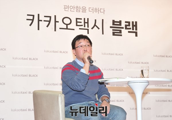 정주환 카카오 부사장이 20일 오전 서울 광화문 코리아나호텔에서 열린 [카카오택시 블랙] 간담회에서 카카오택시 블랙 서비스에 대해 설명하고 있다.