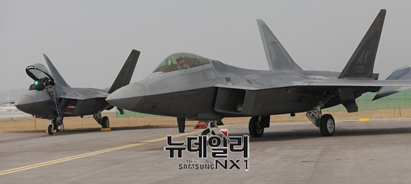 [서울 국제 항공우주 및 방위산업전시회(ADEX)] 개막식이 20일 경기 성남 서울공항에서 개막했다.이날 개막식 기념비행에는 우리공군 블랙이글의 곡예비행이 예정돼 있었지만 짙은 미세먼지 농도로 비행이 취소됐다. 미 공군의 F-22 랩터 스텔스 전투기의 시험비행은 약 1시간 지연돼 진행됐다.20일부터 25일까지 서울공항에서 열리는 이번 전시회는 국내외 우수한 항공기 및 방위산업 제품 63종 77대가 전시된다. 성능과 국제 경쟁력이 증명되어 수출 중인 KT-1 기본 훈련기와 T-50 고등훈련기의 시범비행과 국내 기술로 개발한 K-2 전차, K-9 자주포, K-21장갑차, 차기다연장로켓포 천무 등이 전시된다.세계 항공우주 및 방위산업의 기술 트렌드를 알아보기 위한 국제항공우주심포지엄, 항공우주무기체계발전세미나, 미래지상군발전국제심포지엄, 국제무인항공시스템심포지엄, 국제항공기술심포지엄 등 다양한 국제행사가 전시회 기간 개최된다.(성남=뉴데일리 정상윤 기자