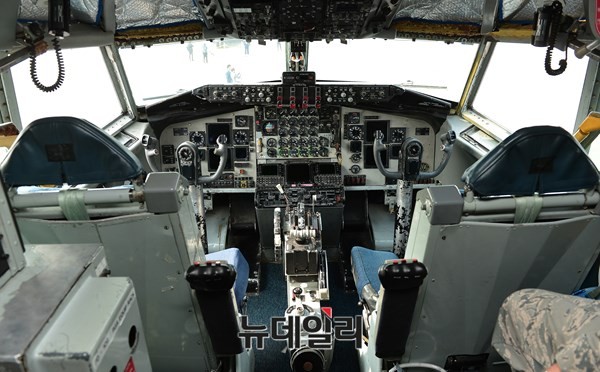 이날 시범비행을 위해 활주로에 등장한 미 공군의 C-17 글로브마스터3 전략수송기는 이륙직전 비행이 취소됐다.