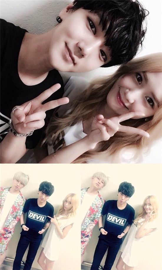첫 번째 사진 속 예성과 윤아는 단둘이 브이 포즈를 한 채 카메라를 응시하고 있다. 흑발의 예성과 금발의 윤아가 제법 어울리는 모습이다.