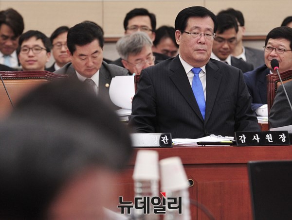 황찬현 감사원장이 22일 오전 서울 여의도 국회에서 열린 법제사법위원회 전체회의에 출석해 의원들을 바라보고 있다.