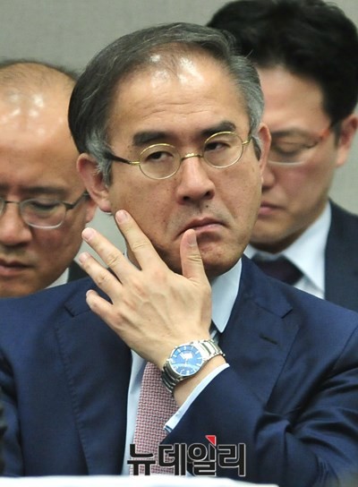 김상률 청와대 교육문화수석이 23일 오전 서울 여의도 국회 운영위원회에서 진행된 [대통령비서실-국가안보실-대통령경호실]에 대한 국정감사에 참석해 자리를 지키고 있다.