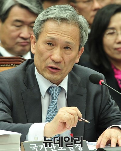 김관진 국가안보실장이 23일 오전 서울 여의도 국회 운영위원회에서 진행된 [대통령비서실-국가안보실-대통령경호실]에 대한 국정감사에서 의원들의 질문에 답하고 있다.