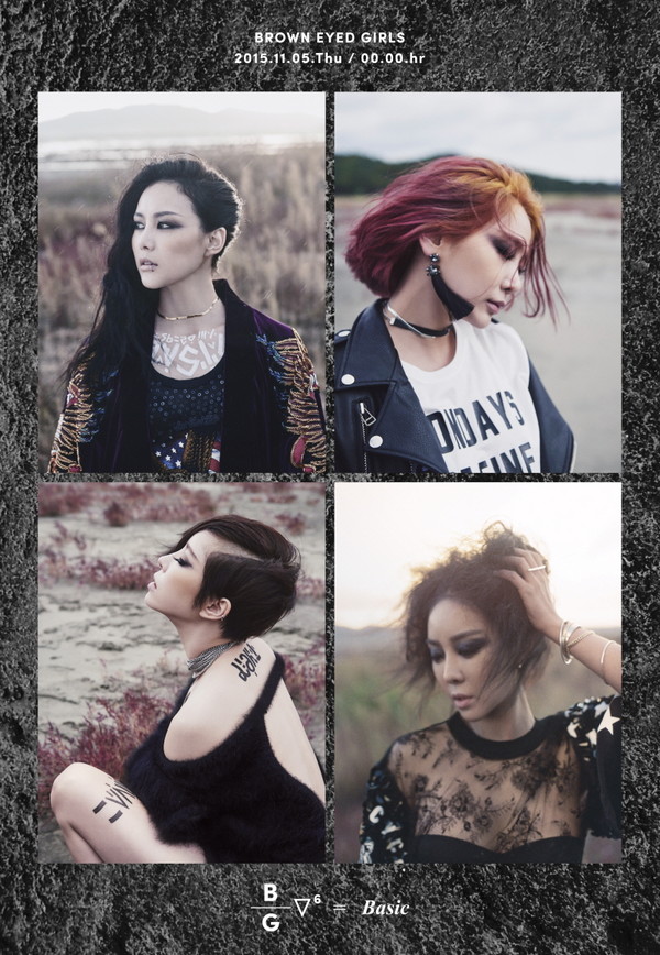 그룹 브라운아이드걸스가 첫 컴백 티저 이미지를 공개했다.브아걸 소속사 에이팝(APOP)은 26일 가인을 시작으로 제아, 나르샤, 미료의 개인 티저 이미지와 단체 티저 이미지를 공개했다.공개된 티저 이미지 속 가장 먼저 눈길을 끄는 것은 황량한 분위기 속 네 멤버의 압도적인 스타일링과 헤어스타일이다.가인은 이번 새 앨범을 위해 짧은 숏컷 헤어에 과감한 헤어 스크래치 등 상상을 뛰어넘는 스타일링에 도전했다. 또한 허벅지와 등 쪽의 독특한 타투와 등라인이 깊게 파인 검은색 의상으로 눈길을 끌었다.단발머리에 핑크와 노란빛의 투톤헤어로 변신한 제아는 큰 테슬 귀걸이와 초크 목걸이로 여성미와 신비한 매력을 선보였다.아슬아슬한 시스루 의상에 짙은 스모키 눈화장의 나르샤는 독특한 펌헤어를 완벽히 소화해 색다른 매력을 발산했다.고혹적인 눈빛의 래퍼 미료는 검은색 긴 헤어와 화려한 자켓으로 시크한 카리스마를 자아내며, 특히 입술 피어싱과 목 아래의 하얀 타투로 강렬한 느낌을 더했다.특이한 점은 티저 이미지 아래 문구다. 방정식 형태로 된 이 문구는 새 앨범에 대한 결정적인 힌트로, 팬들의 궁금증을 높이고 있다.한편 브라운아이드걸스의 새 앨범은 11월 4일 밤 12시에 공개될 예정이다.