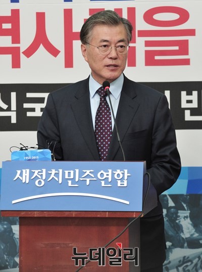 • 새정치민주연합 문재인 대표가 29일 오전 서울 여의도 당대표실에서 [역사교과서 국정화 논란]과 관련 기자회견을 갖고 있다. 이날 문대표는 대통령에게 [역사 교과서 사회적 논의기구] 설치를 제시했다.