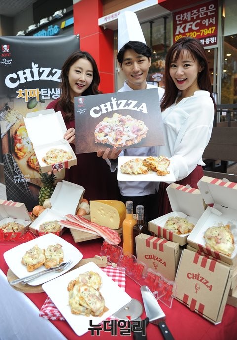 • 치킨 전문 브랜드 KFC가 2일 오전 서울 종로구 KFC 청계천점에서 신메뉴 '치짜(CHIZZA)' 출시행사를 하고 있다.
