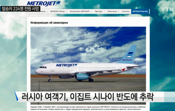 현지 조사결과 해당 여객기는 러시아 코갈림아비아 항공 소속 에어버스 A-321 여객기인 것으로 밝혀졌다.