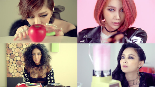 노란색 네일과 아이 메이크업에 포인트를 준 가인, 화려한 핑크톤 헤어로 여성미를 돋보인 제아, 과감한 씨스루 의상과 펌 헤어의 펑키걸 나르샤, 짙은 스모키 메이크업과 입술 피어싱, 목 부분의 타투가 파격적인 미료까지, 네 멤버 각자의 개성을 드러낸 역대급 스타일링도 눈길을 사로잡는다.