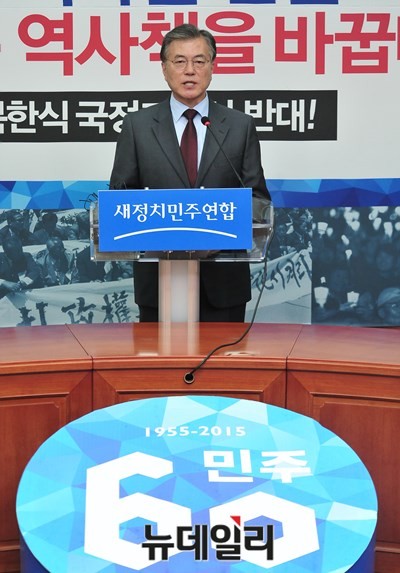 문재인 새정치민주연합 대표가 4일 오전 서울 여의도 국회에서 열린 역사국정교과서 철회 대국민담화를 발표하고 있다.