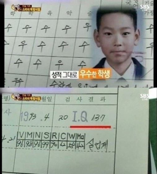 그는 4일 '뉴스룸'에 전격 출연, 11년 만의 방송으로 시선을 사로잡았다. 특히 이날 그는 조금이지만 기상 캐스터의 역할까지 훌륭히 소화하며 여성팬들을 설레게 했다. 이와함께 그의 IQ와 중학교 성적표가 다시금 눈길을 모은다.