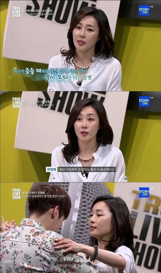 과거 문정희는 케이블채널 스토리온 '트루 라이브쇼'에 특별 게스트로 출연, 정열적인 살사 댄스 강습과 시범으로 MC들을 열광케 했다.