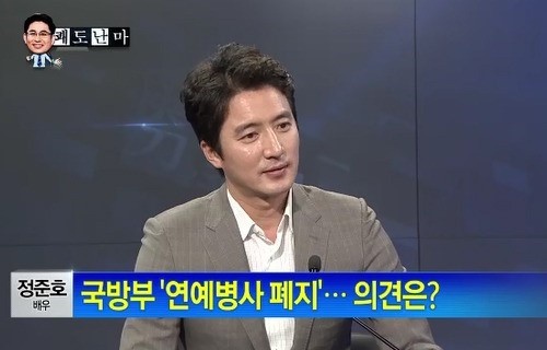 정준호는 과거 채널A '박종진의 쾌도난'에 출연해 "문제가 발생했다고 없애기보다 문제점을 파악해 장기적으로 원활히 운영할 수 있는 방법을 제시해야 할 것 같다"고 연예병사 폐지에 반대 입장을 보였다.