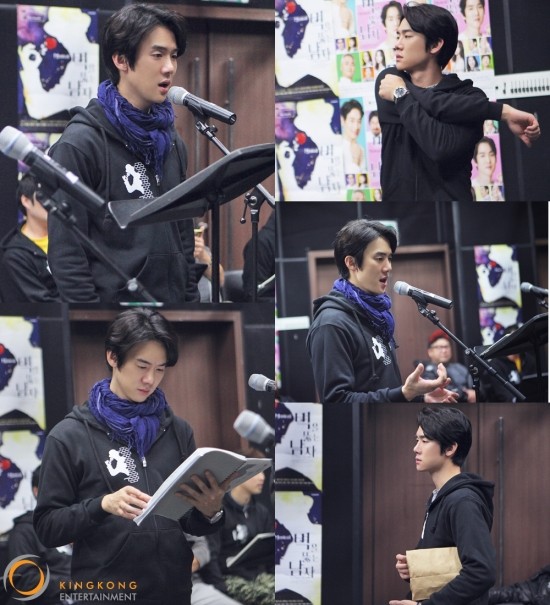 배우 유연석의 열혈 연습 현장이 포착됐다.소속사 킹콩엔터테인먼트 측은 '벽을 뚫는 남자'를 통해 데뷔 후 첫 뮤지컬 도전에 나서는 유연석의 연습실 사진을 공개했다.사진 속 유연석은 공연 연습실에서 노래 연습에 한창이다. 그는 팬들이 선물한 것으로 알려진 공연팀 단체복을 입고, 스카프를 둘러 목을 보호하고 있다.휴식 시간에 유연석은 몸을 풀거나 악보를 보며 준비를 하다가도, 연습이 시작되면 '듀티율'로 완벽 변신해 열정적인 모습을 보였다.또 다른 사진에서 유연석은 신 연습에 집중하고 있다. 그는 끊임없이 동료 배우들, 스태프들과 소통하며 캐릭터를 완성해 나가고 있다는 후문. 특히, 대사가 노래만으로 표현되는 송스루(Sung-through) 공연인 만큼 가창력은 물론 유연한 호흡을 위해 밤낮 없이 연습에 매진하고 있다.한편, 뮤지컬 '벽을 뚫는 남자'는 오는 21일부터 2016년 2월 14일까지 홍익대 대학로 아트센터에서 공연되며, 유연석 외에도 이지훈, 고창석, 조재윤, 배다해, 문진아, 임청형, 정의욱 등이 출연한다.[사진=킹콩엔터테인먼트]