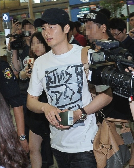 이 날 기성용은 블랜진에 화이트 티셔츠를 걸치고 인천공항을 빠져나가고 있다.