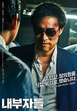 영화 ‘베테랑’ ‘더 폰’ ‘특종: 량첸살인기’ 등 2015년 끊임없이 스크린 속에서 활약했던 배우 배성우. 그가 이번에도 ‘내부자들’ 속에서 이병헌의 심복 박종팔 사장 역을 맡아 눈길을 끈다. 올해 개봉작만 6편인 배성우는 영화 ‘오피스’로 68회 칸 영화제의 레드카펫까지 밟으며 국내 뿐만 아니라 해외로 자신의 영역을 넓혀나갔다. 그의 얼굴은 영화 속 캐릭터들에 걸맞게 때로는 선하게 때로는 악하게 바뀌며 관객들의 이목을 집중시켰다. 그런 그가 이번 영화 ‘내부자들’에서는 안상구(이병헌 분)의 든든한 조력자로 분해 극 중 가장 인간적인 캐릭터의 면모를 보여줄 예정이다.