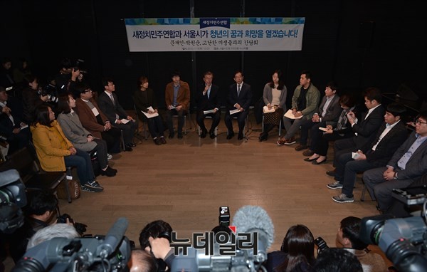 새정치민주연합 문재인 대표와 박원순 서울시장이 19일 정오 서울시청 바스락홀에서 미생들과의 간담회를 열었다.