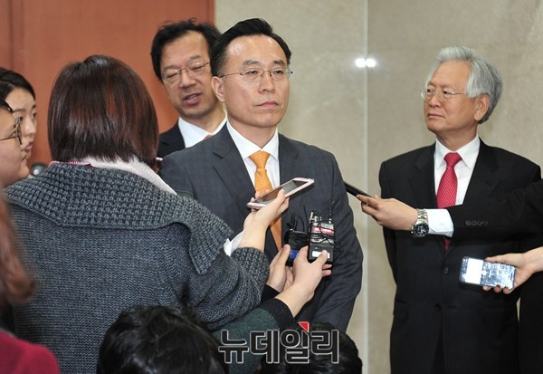 세월호 특별조사위원회 여당 추천위원(이헌, 황전원, 고영주, 석동현, 차기환)들이 19일 오전 서울 여의도 국회 정론관에서 기자회견을 갖고 [야당 특조위 위원들이 진상조사에 관심이 없고 오직 대통령의 7시간 행적조사 등 진상조사에 불필요 한 일에 신경을 쓴다.]면 전원 사퇴를 하겠다고 밝히고 기자들의 질문에 답하고 있다.