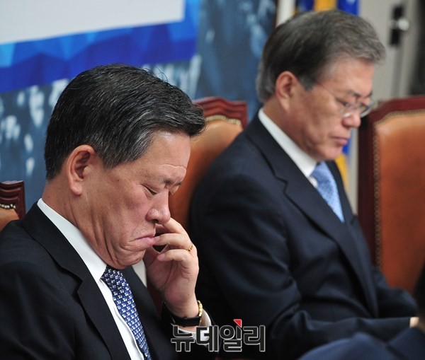 새정치민주연합 주승용 최고위원이 20일 오전 서울 여의도 국회 당대표 회의실에서 열린 최고위원회의에서 두 눈을 감은채 생각에 잠겨 있다. 이날 주승용 최고위원은 '문-안-박(문재인·안철수·박원순)' 임시지도부 제안을 비난하며 문재인 대표의 공개 사과를 요구했다.