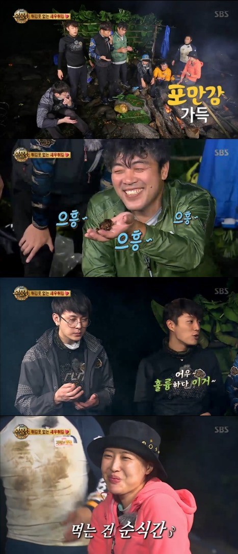 20일 오후 방송된 SBS '정글의 법칙'에서는 병만족이 목표량의 새우를 잡아 식용유에 맛있게 튀김요리를 해먹는 장면이 그려졌다.