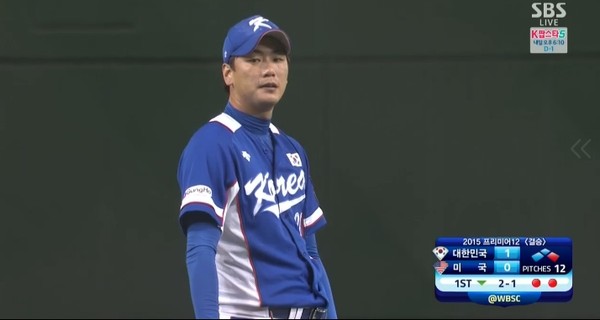 21일 일본 도쿄돔에서 열린 2015 WBSC 프리미어12 한국과 미국의 결승전에서 한국의 선발투수 김광현은 1안타를 허용했지만 무실점으로 첫 이닝을 마무리했다.