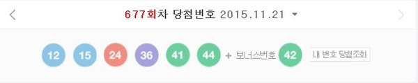 한편 지난 21일 추첨한 제 677회 나눔로또 1등 당첨번호는 '12, 15, 24, 36, 41, 44'번이며, 보너스 번호는 '42'번이다.