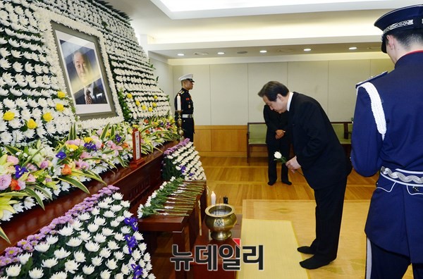 새누리당 김무성 대표가 22일 오전 서울 종로구 연건동 서울대병원 장례식장에 마련된 고(故) 김영삼 전 대통령 빈소에서 조문하고 있다. (사진=공동취재단)