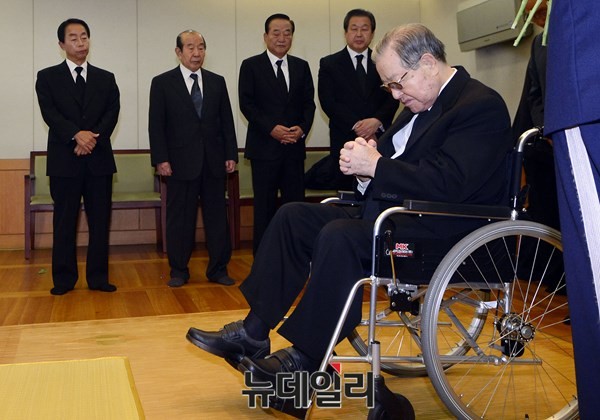 김종필 전 총리가 22일 오전 서울 종로구 연건동 서울대병원 장례식장에 마련된 고(故) 김영삼 전 대통령 빈소에서 조문하고 있다. (사진=공동취재단)