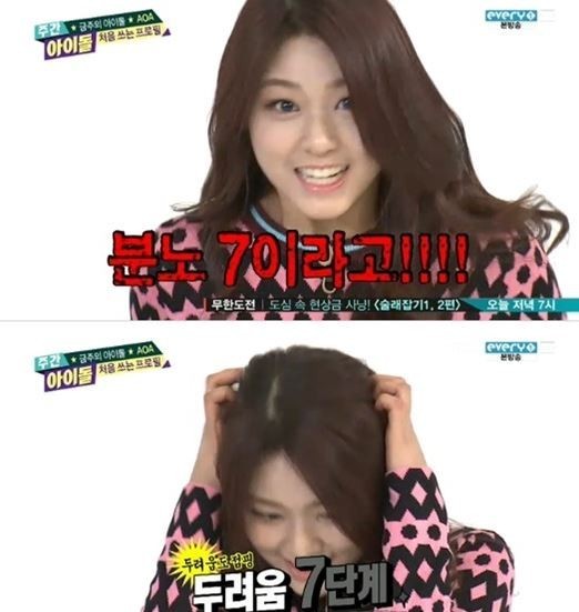 이후 설현은 MC 정형돈과 데프콘의 장난으로 슬픔, 기쁨, 분노, 두려움 연기를 단계별로 도전했고, 이를 지켜보던 정형돈은 "다 합쳐서 돌+I(돌+아이) 1단계"라고 설명해 웃음을 줬다.