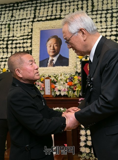 방송인 이상용씨가 24일 서울 종로구 서울대병원 장례식장에 마련된 故 김영삼 전 대통령의 빈소를 찾아 조문하고 있다.