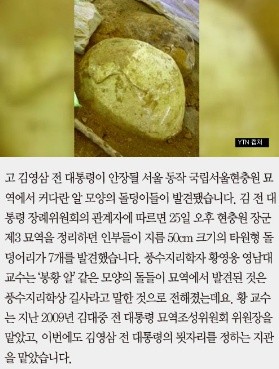 그리고 그 ‘끝판왕’은 김 前 대통령 묘역에서 알모양 돌덩이 7개와 관련된 보도일 것이다.