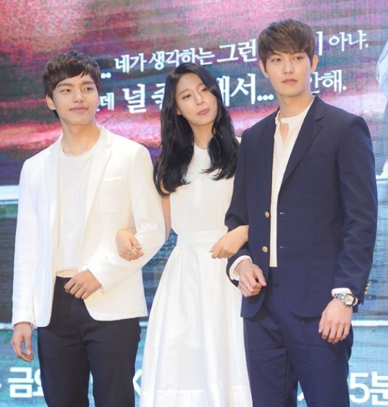 배우 여진구, 걸그룹 에이오에이 설현, 그룹 씨엔블루 이종현이 지난 5월 12일 오후 서울 영등포구 여의도동 글래드호텔에서 열린 KBS 2TV 금요미니시리즈 ‘오렌지 마말레이드(극본 문소산, 연출 이형민,최성범)' 제작발표회에 참석해 포즈를 취하고 있던 것.