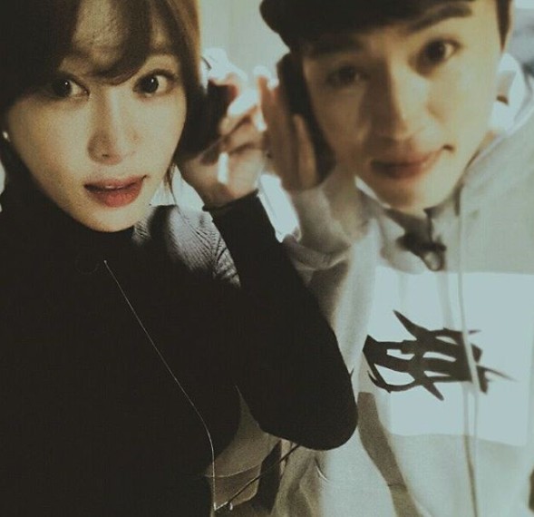 공개된 사진 속 오민석은 강예원과 함께 밀착하여 귀여운 표정으로 카메라를 응시하고 있다.