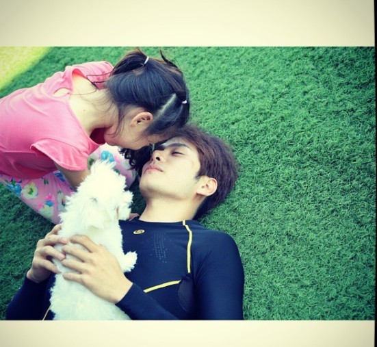 공개된 사진 속 이이경은 잔디밭에 누워 여자아이와 알콩달콩한 모습을 보여주고 있다.