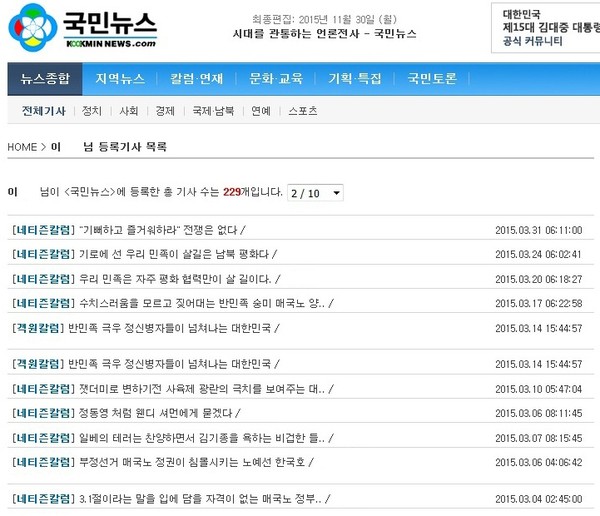 확인 결과, 이OO이라는 인물은 지난 2013년부터 최근까지 <국민뉴스>에 229개의 칼럼을 연재한 것으로 드러났다. -
