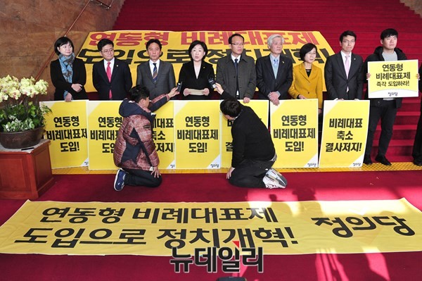 심상정 정의당 대표가 30일 오전 서울 여의도 국회에서 연동형 비례대표제 도입 촉구 단식농성 돌입 선포식에서 기자회견문을 발표하고 있다.