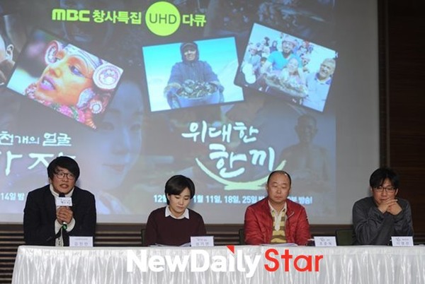 1일 오후 상암 MBC 골든마우스홀에서 열린 MBC 창사특집 UHD 다큐 '천개의 얼굴 화장 & 위대한 한끼' 기자시사회에서 성기연PD는 "저희가 세계 최초 화장의 문명사를 다루기도 했지만 현대의 메이크업 트렌드를 2부에 녹여내기도 했다. 다양한 관련 인물들을 만나 인터뷰를 시도했다"고 전했다.