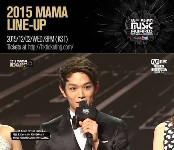 2일 오후 방송된 엠넷 '2015 엠넷 아시안 뮤직 어워즈(MAMA)'에 참석한 케빈오는 블랙 정장을 입고 등장했다.
