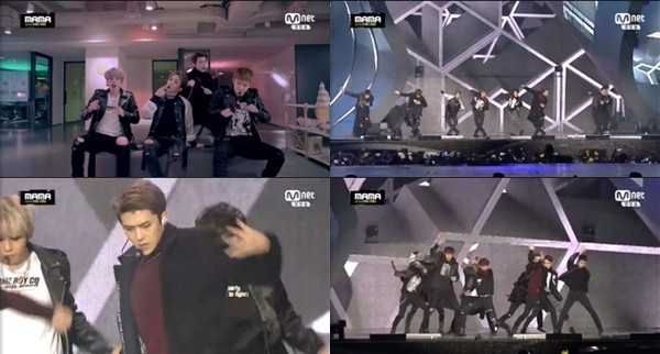 엑소는 2일 오후 올해로 일곱 번째를 맞이한 엠넷 아시안 뮤직 어워드(Mnet Asian Music Award, 이하 MAMA)에서 'call me baby', 'light me right' 등 히트곡 무대들을 차례로 선보였다.