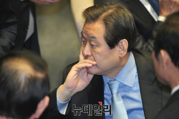 2016년 예산안 법정처리 시한인 2일 오후 서울 여의도 국회에서 본회의를 앞두고 새누리당 김무성 대표가 심각한 얼굴로 의원들의 이야기를 듣고 있다.