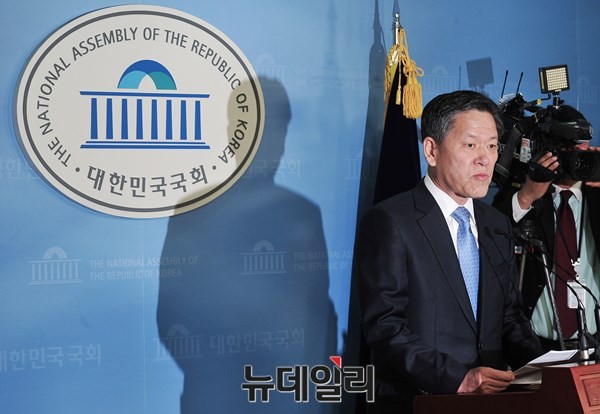 새정치민주연합 주승용 최고위원이 8일 오전 서울 여의도 국회 정론관에서 기자회견을 갖고 최고위원직 사퇴의사를 밝히고 있다.