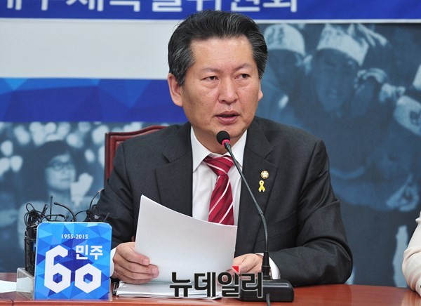 새정치민주연합 정청래 최고위원이 9일 오전 서울 여의도 국회에서 열린 새정치민주연합 최고위원회의에서 모두발언을 하고 있다.
