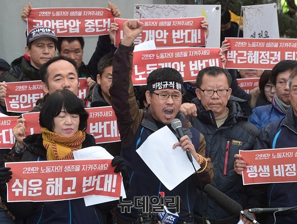 은신 중이던 조계사 관음전에서 화쟁위원장인 도법 스님과 나온 한 위원장은 곧 바로 대웅전에 들어가 절을 올린 뒤 조계종 총무원장인 자승 스님을 면담했다. 면담 후 이어진 기자회견에서 한 위원장은 "노동개악이 폐지될 때까지 투쟁을 이어가겠다"고 밝혔다. 기자회견 후 조계사 정문으로 나간 한 위원장은 경찰 호송차에 올랐다.