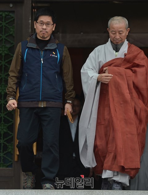 조계사로 은신한 한상균 민주노총위원장이 은신 24일 만인 10일 오전 조계사에서 퇴거했다.