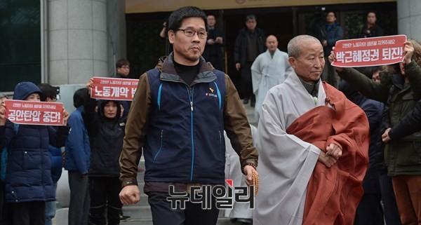 부처님의 자비의 품에 이 땅 이천만 노동자의 처지를 의탁한 25일 동안 고통과 불편을 감내하여 주신 조계종과 조계사 스님, 신도님들께 감사의 인사를 드립니다. 무엇보다 이천만 노동자들이 생존이 걸린 노동개악을 막기 위한 활동에 함께 하겠다 하신 조계종과 조계사에 감사드립니다.