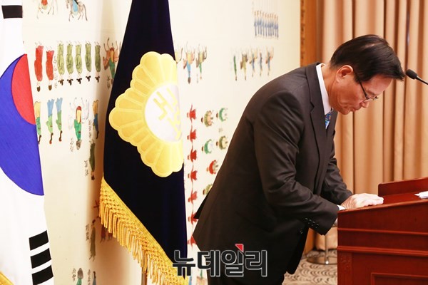 정의화 국회의장이 10일 오후 서울 여의도 국회 접견실에서 대국민담화문을 발표한 후 인사를 하고 있다. 이날 정 의장은 15일 이전까지 선거구 획정 문제에 결론을 내지 않을 경우 특단의 조치를 취하겠다고 밝혔다.