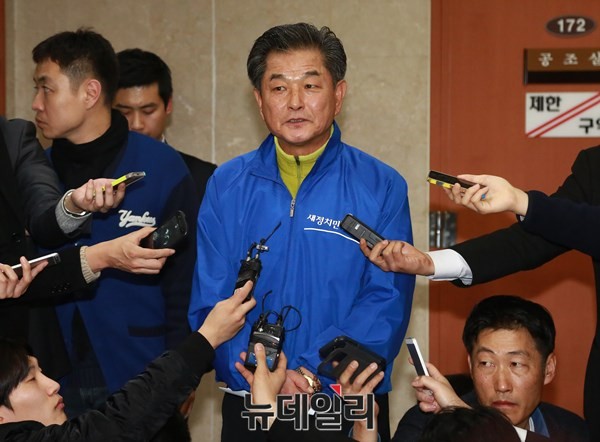 [포토] 기자들의 질문에 답하는 신학용 의원