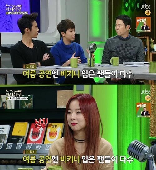이날 이홍기는 해외공연 진행 당시 "우리 팀 일본 공연 때도 드레스코드가 비키니였다"고 말해 MC들을 놀라게 만들었다.