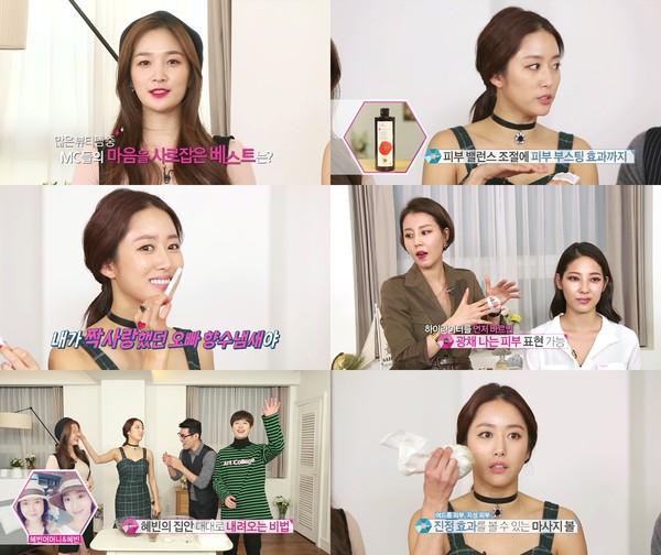 이날 방송에서는 '수분 중독'이라 불리는 피부 케어 3종 세트부터 장미향 가득한 촉촉한 바디 케어 제품, 전혜빈이 짝사랑했던 오빠의 향기와 비슷한 로맨틱한 향수, 피부 표현의 절대 강자 '절대 쿠션'과 아이라이너! 까지 MC들이 직접 뽑은 핫 아이템들을 모두 공개했다.