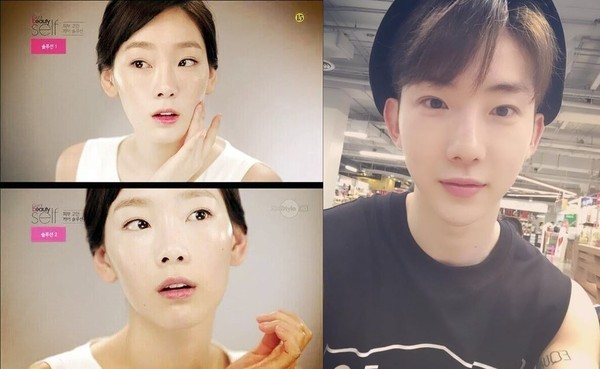 한 커뮤니티에는 '겟잇뷰티 2AM 조권편'이라는 제목과 함께 사진 한 장이 공개되었다. 공개된 사진 속 태연은 민낯임에도 하얀 피부를 자랑하며 측면을 바라보고 있다.